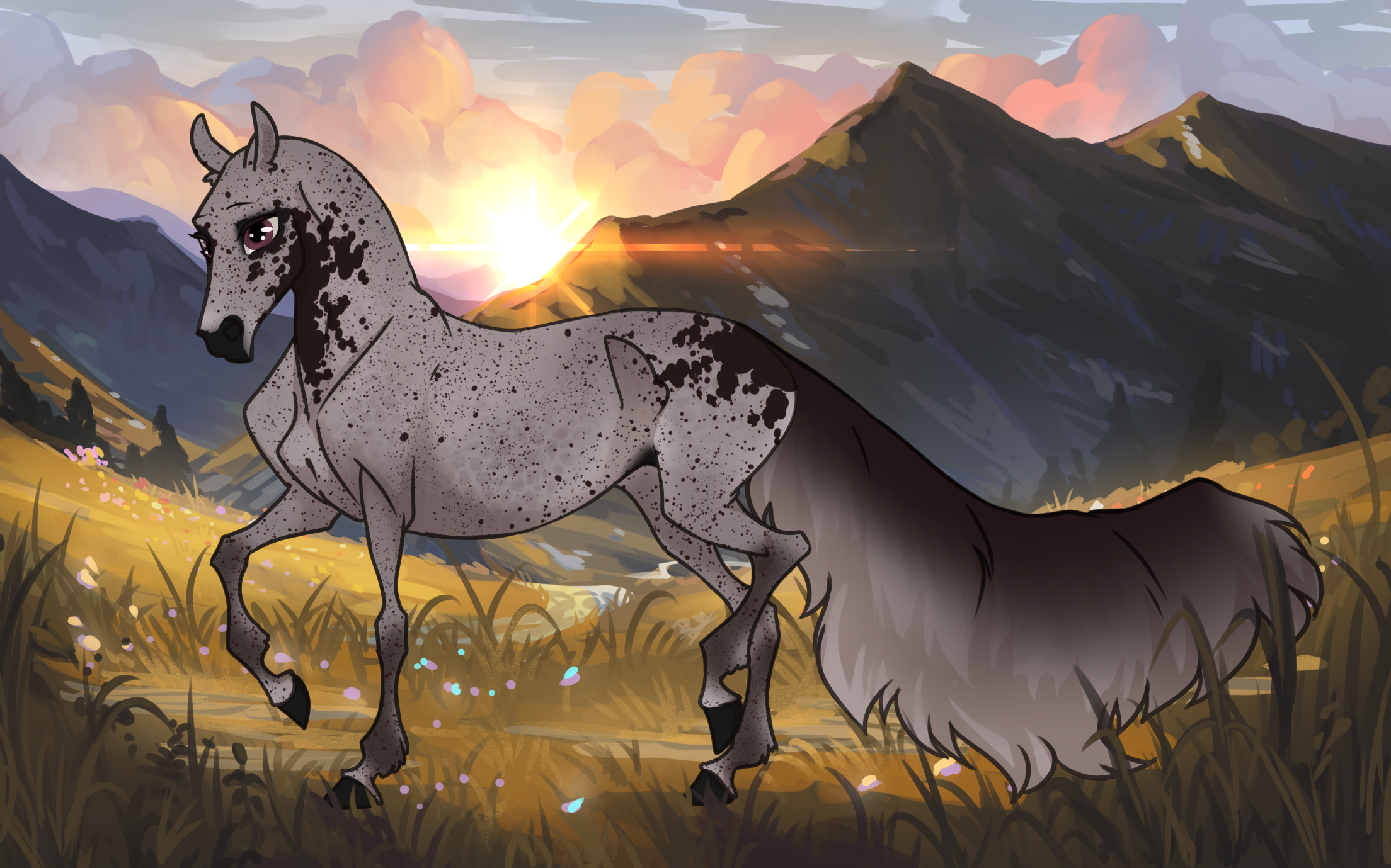 Dominant White on Grey on Chestnut Plum Rapunzel + Patchwork (Bloodmarked Grey on Black Plum)