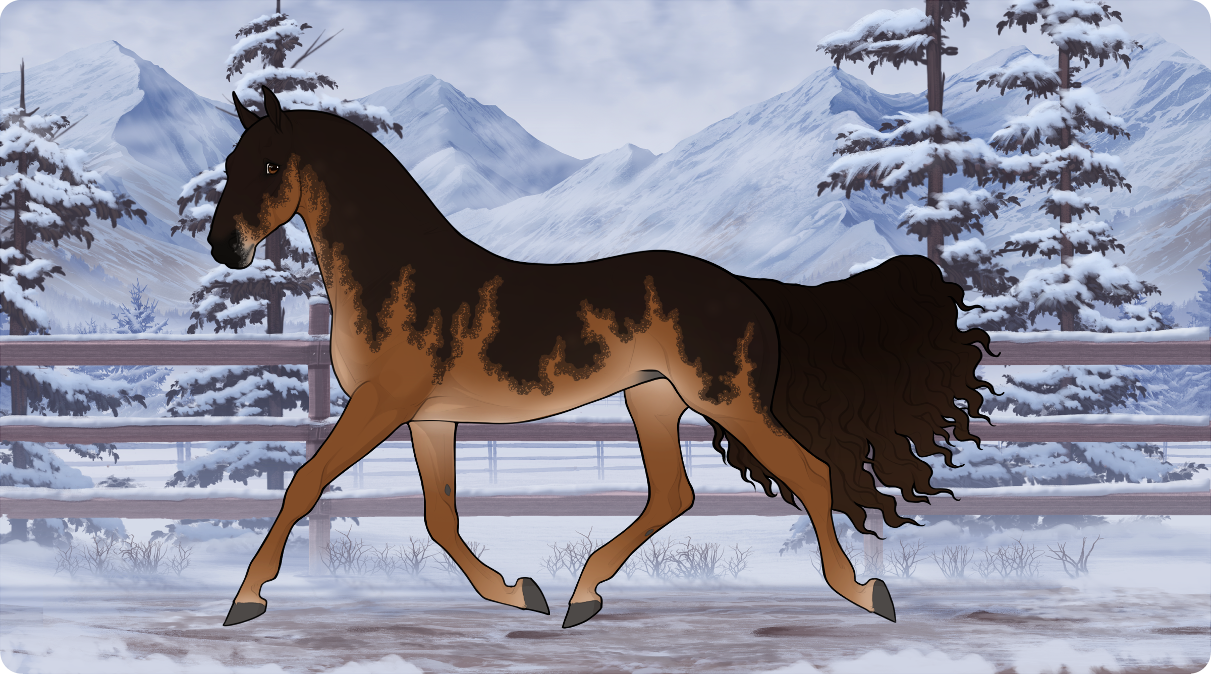 Smoky Black Sabino Snowfall + Patchwork (Pangare Chestnut), Halo