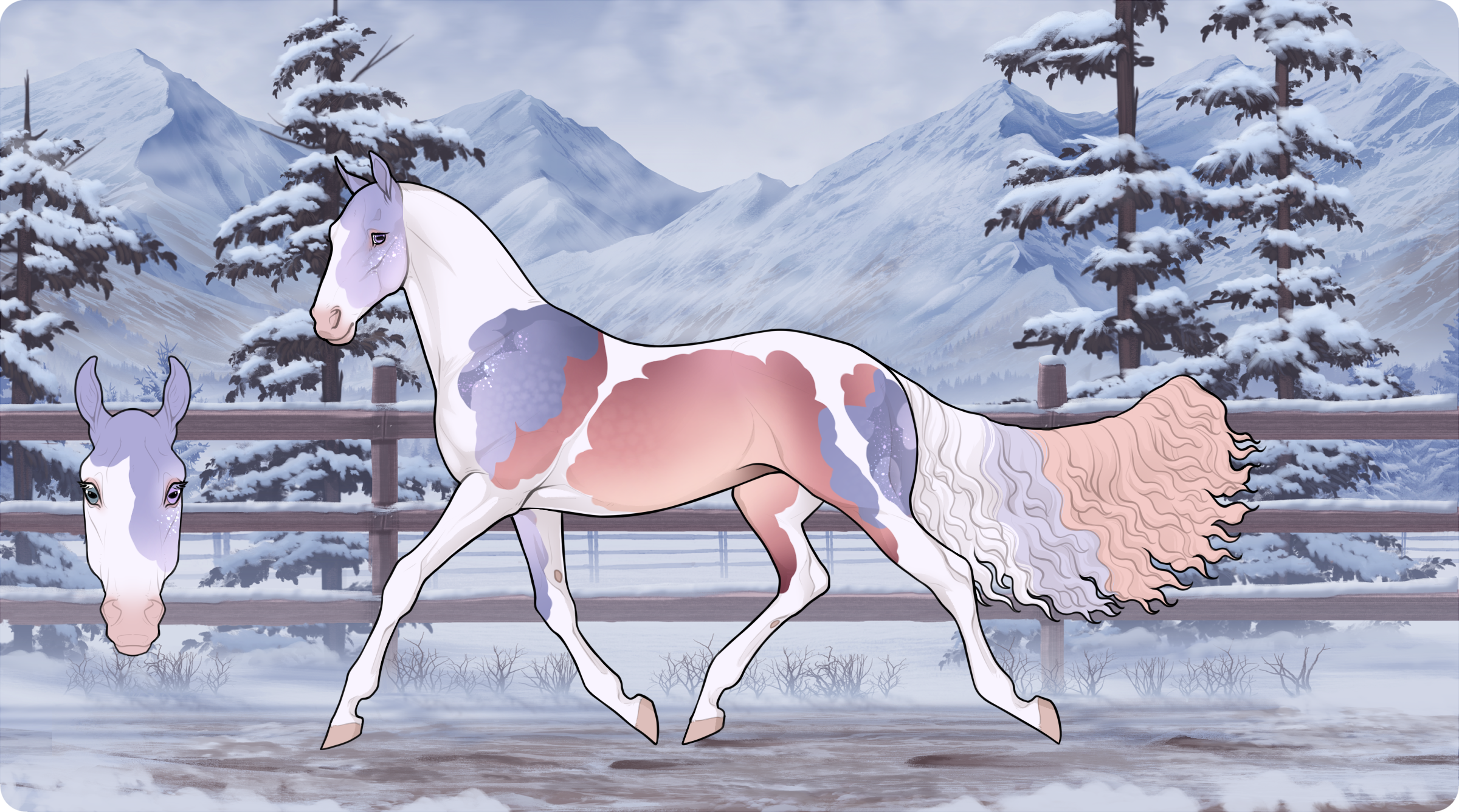 Stained Dusk Tuxedo Tobiano Splash Rapunzel (Carries Flaxen) + Chimera (Dawn Tobiano Overo Splash), Glittered