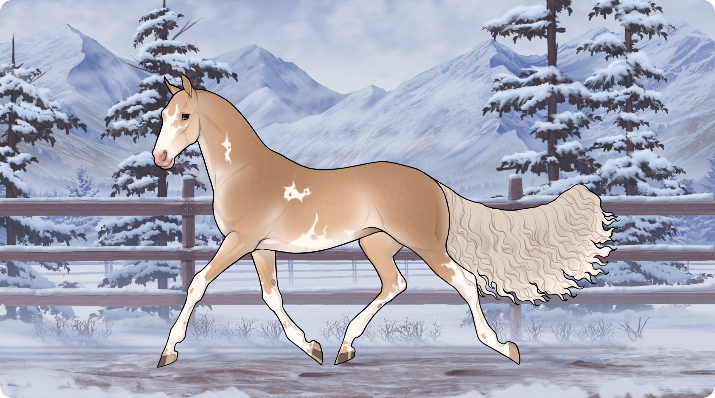 Blotted Sooty Gold Champagne Husky Sabino Overo Rapunzel (Carries Pearl, Walnut)