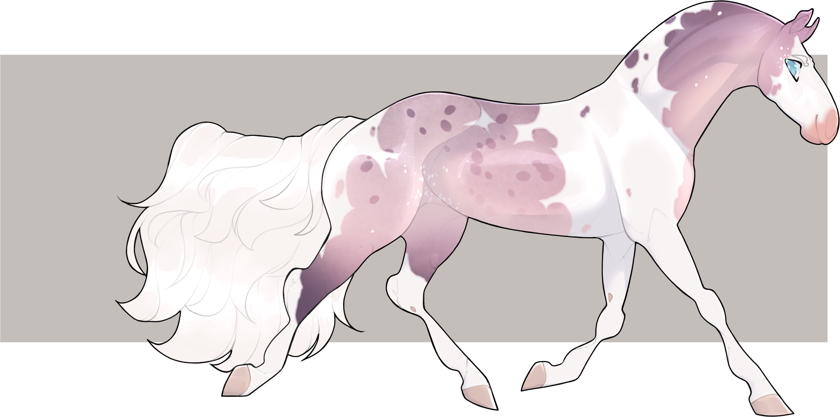 Blotted Pangare Twilight Roan Tobiano Overo (Carries Rapunzel, Inverse) + Vitiligo