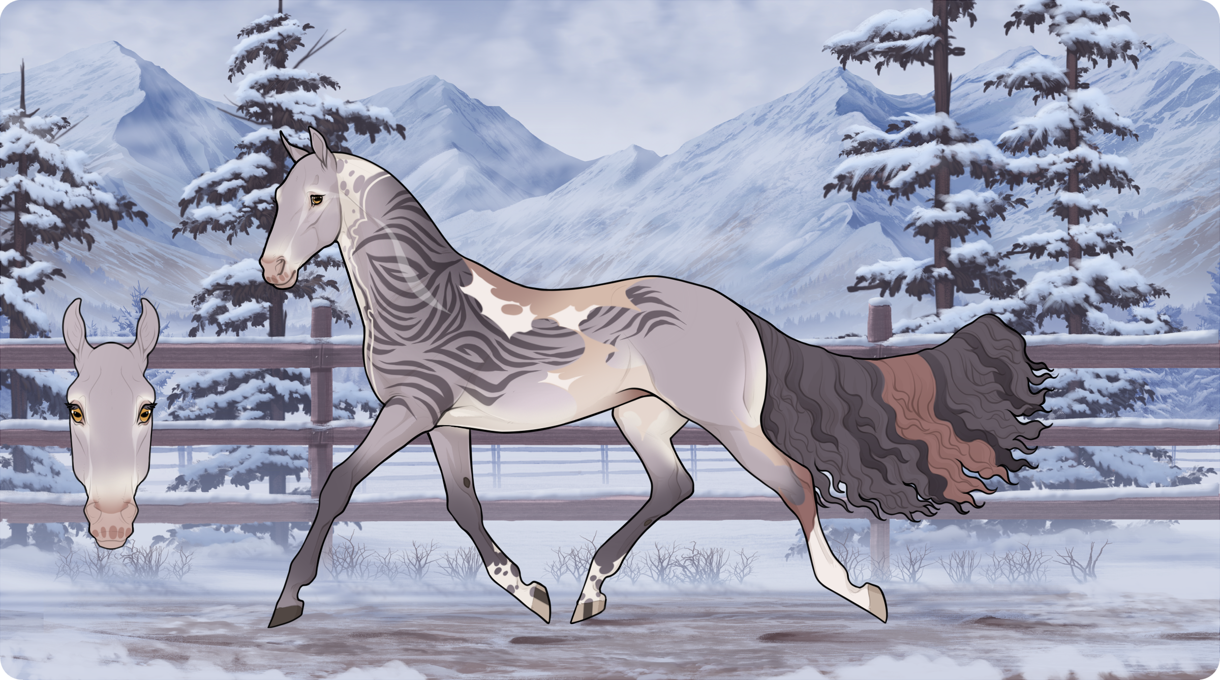 Blotted Pangare Titanium Tabby Tuxedo Rapunzel (Carries Flaxen) + Gingerbread, Chimera (Brass Overo)