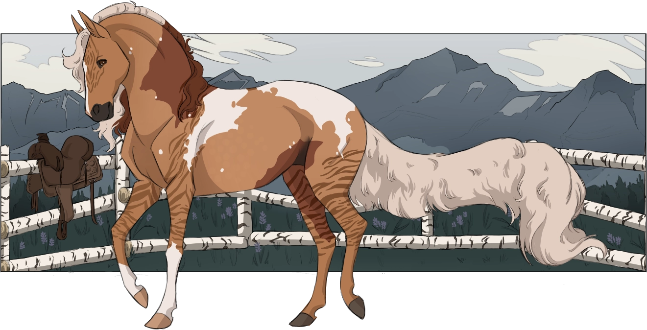 Primitive Dunalino Tobiano Overo Rapunzel + Chimera (Primitive Red Dun Splash), Birdcatcher Spots, Wulf