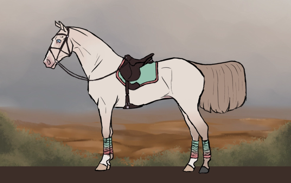 Nilla is a stunning 17hh mare of the rare and majestic Loshenka breed, known for their grace, intelligence, and smooth, fluid movement. What sets Nilla apart is her mesmerizing Classic Cream Champagne coat – a soft, glowing hue that shimmers in the sunlight with an almost ethereal quality. Her creamy gold coat is complemented by amber eyes and a velvety pink-tinted skin, typical of the champagne gene, giving her an elegant and otherworldly appearance.