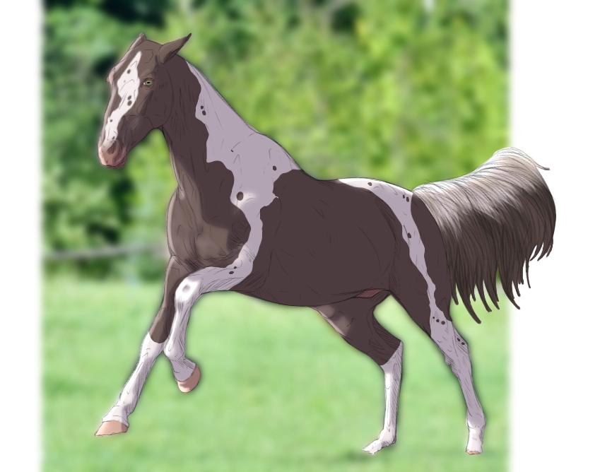 AFTER i knew that affyre was going to be mine i decided i wanted to get another herd member, this time i was on the hunt for a stallion! when 2569 showed up in For adoption i urgently messaged the owner of the ad and soon got a reply, this gorgous boy was listed as a classic champagne tobiano, tobiano is one of my favourite coat patterns and he looked so eligant waltzing around in the video that was attached in the advertisment.