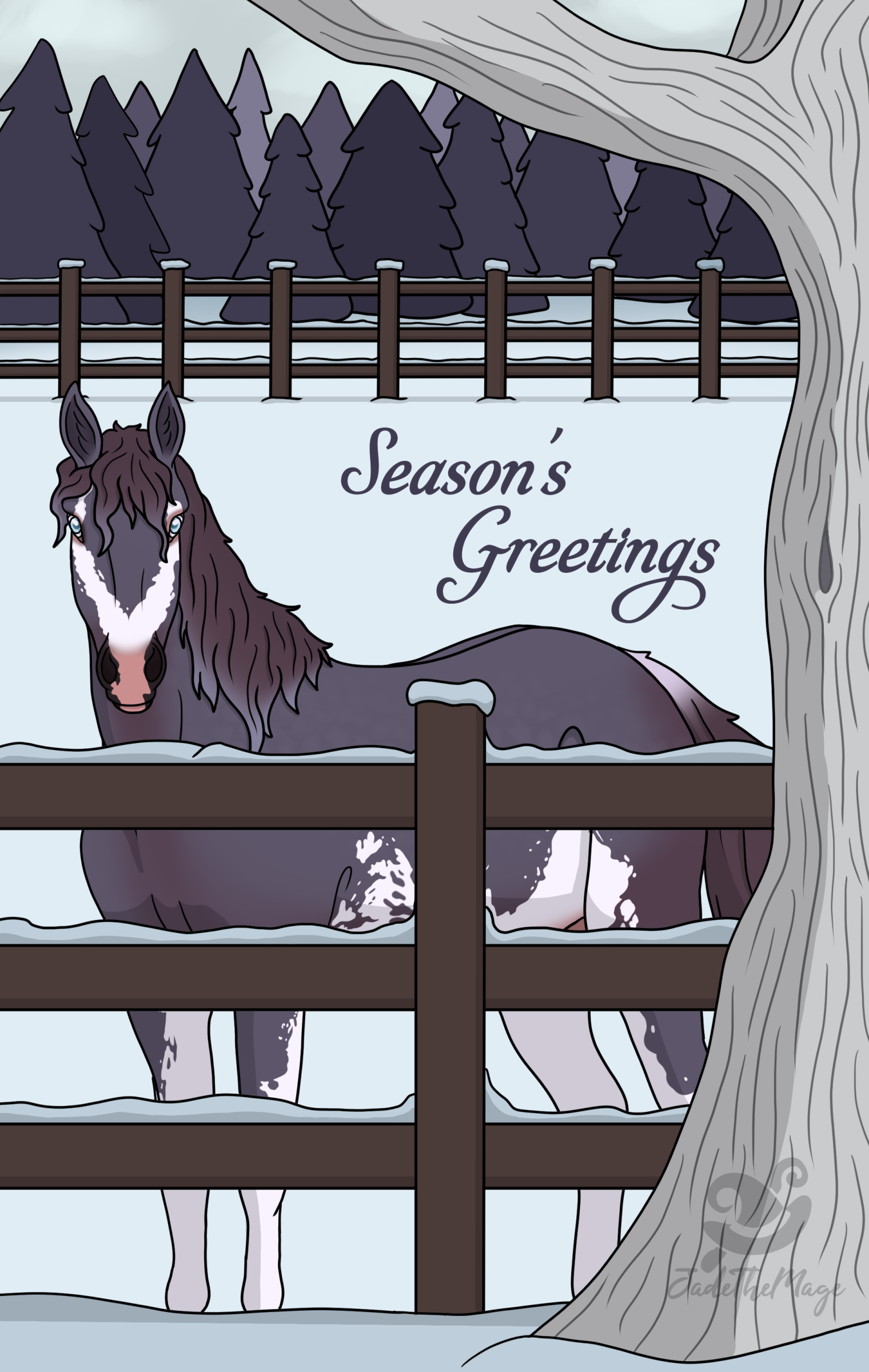 Anya snapped a beautiful photo of Razz out in the pasture. She and Marcus decided to use it as their greeting card for the season.