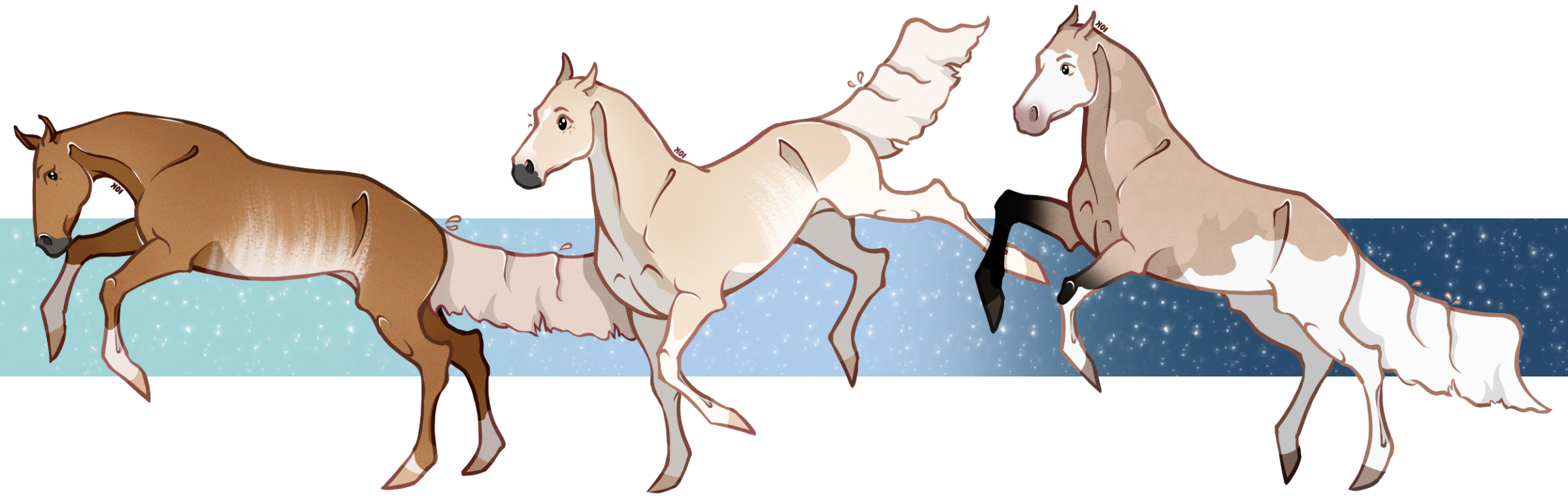 And for their next stop, the nearby treeline seems, as always, tempting. Even if they go in there every single day, it still hides so many possibilities, so many secrets! Solimar, ever confidentl, led the way. Not much of an actual "follow me! Let's check this out!" though. Blesk and Magnifíco just act as little keychains sometimes and follow after her no matter where she goes, sometimes she desn't even notice they're coming along. As she glided through the grass, right behind her comes Blesk... and Magnífico, bouncing along like a child, zigzagging around poor Blesk, who trotted along with a scowl.