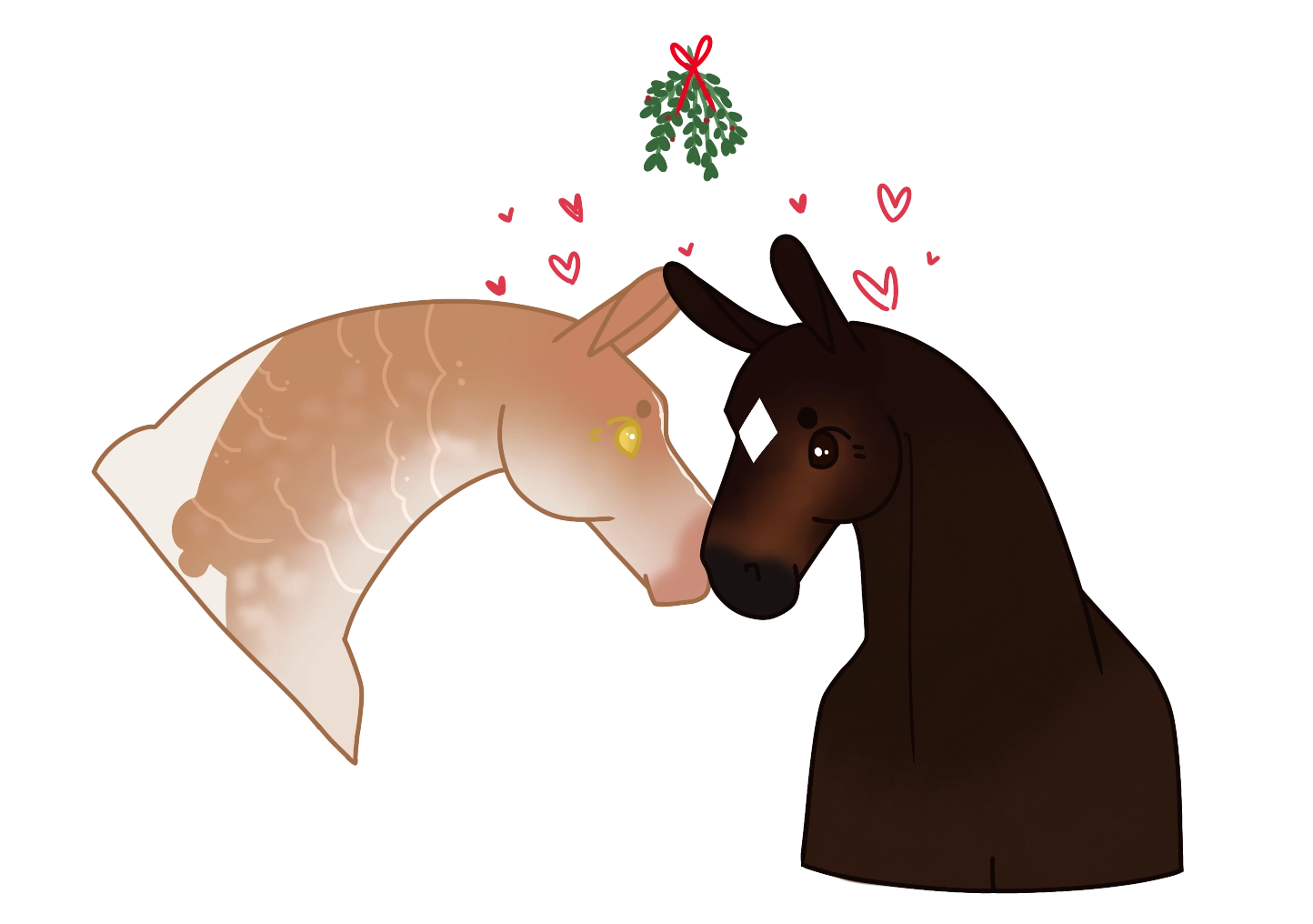 - Draw a pair of horses under the mistletoe
