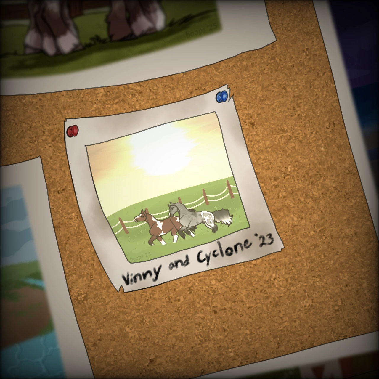 In the corner of an old barn sits a bulletin board. The countless memories made over the many years of its operation decorate the wall. One tiny photo in particular shows two horses running carefree in the main pasture. The two had belonged to a wealthy woman who had become ill, and in that state was sent to a nursing home. Her wish was for her horses to be left where they were and be placed in the barn owners care, however the daughter had got a hold of them first and sent them through a sale yard for a quick dollar. Nobody has the heart to take the picture down, so there it sits, a constant reminder of the beautiful pair now separate, and the wounded heart of the barn community of the tragedy that had occured.