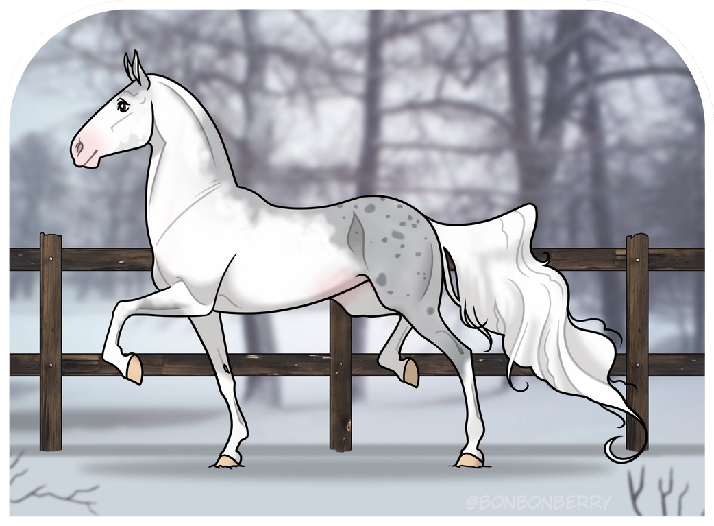 -has scarring on her muzzle, which looks a bit like freckles. It stems from an encounter with a blackberry bush when she was still a foal. She did not really learn her lesson.