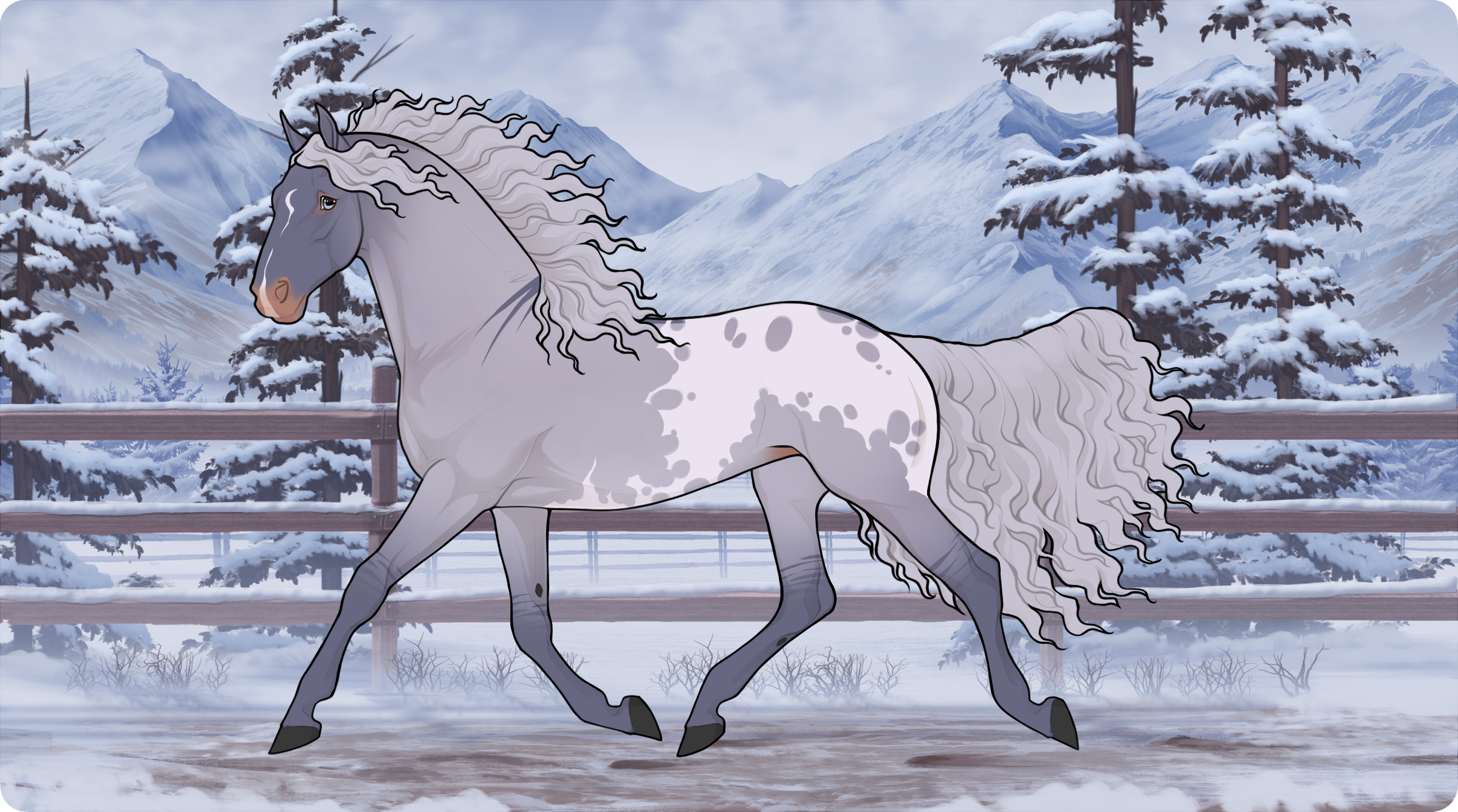 Neptune is a part of Mossy Grove Ranch and is the most dangerous horse they have around. Her history and pedigree is unknown as she was discovered by Jackson in the wild, disheveled, messy and fighting for survival. It is suspected that she was either released at a young age, escaped on her own, or her past owner/s were killed and she was taken only to be abandoned again, and had to survive in the wild all on her own. Due to this, she does not trust anyone and will lash out if stressed or if there are too many people around her at once. Nobody is allowed to handle her other than Jackson, who is the only one she'll allow to come close to her vicinity without becoming angry. She is not capable of working at this time, as much focus is put on helping her instead.