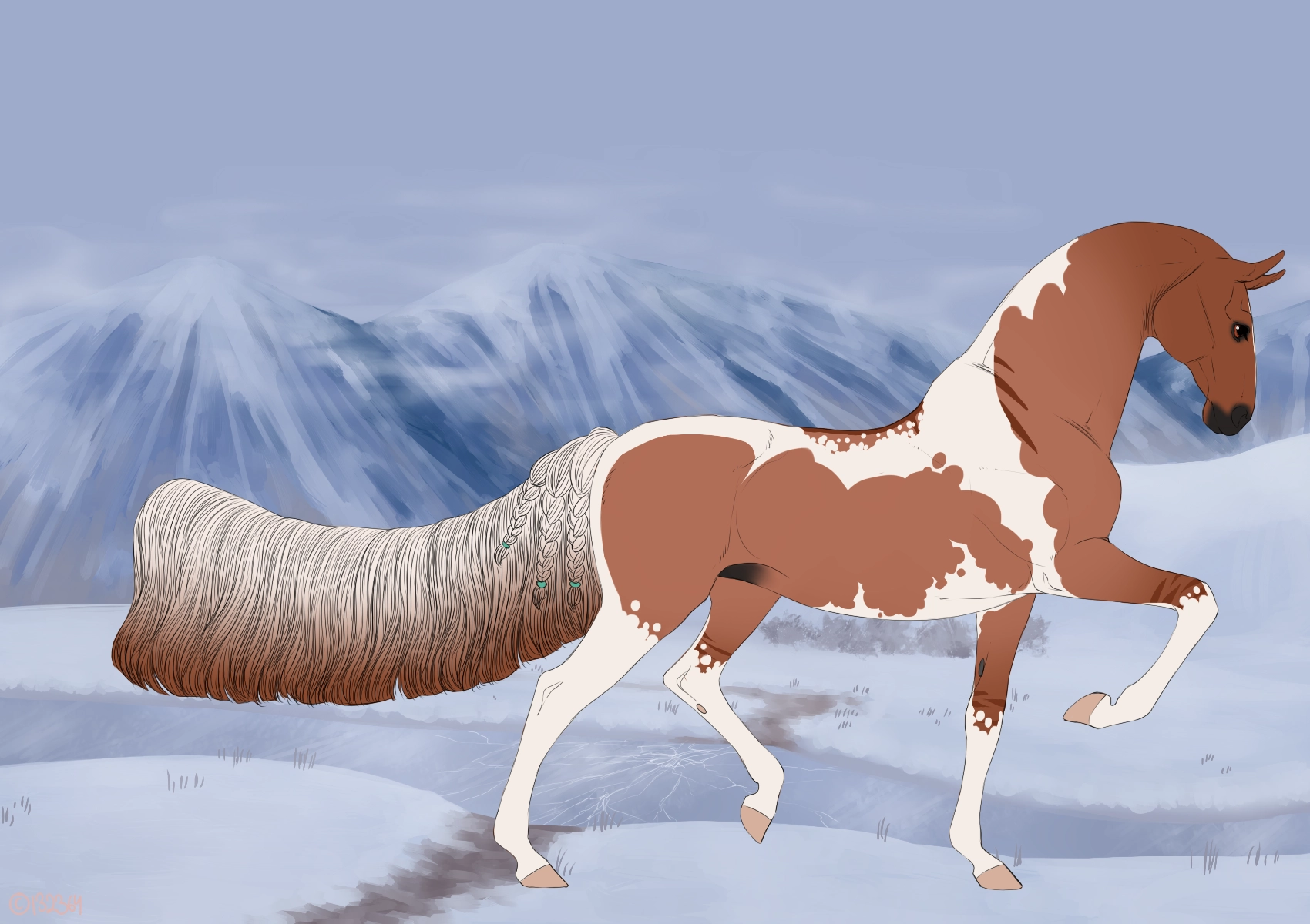 Primitive Red Dun Tobiano Sabino Snowfall Rapunzel