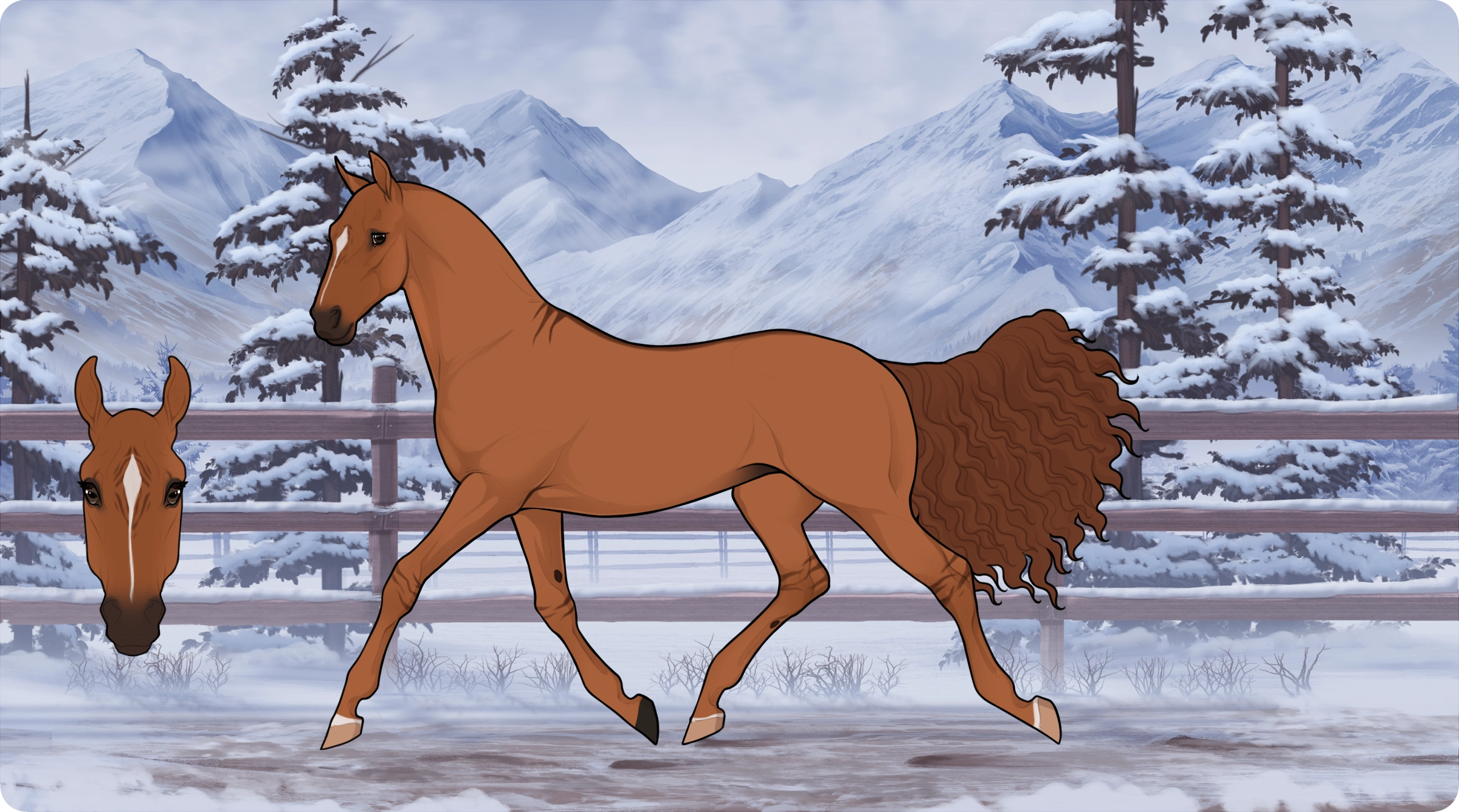 Backstory: Goose was born of the Sire: 0011 Vivid and the Dam: 5534 Rosebud and was bought as a filly when she was around 3 years old. Goat took charge of her training before GLC was made and then gifted to the centre's owner: Null. She is incredibly spoiled, knowing no hardship or hunger in her life, and she thinks she deserves anything the other horses get.
