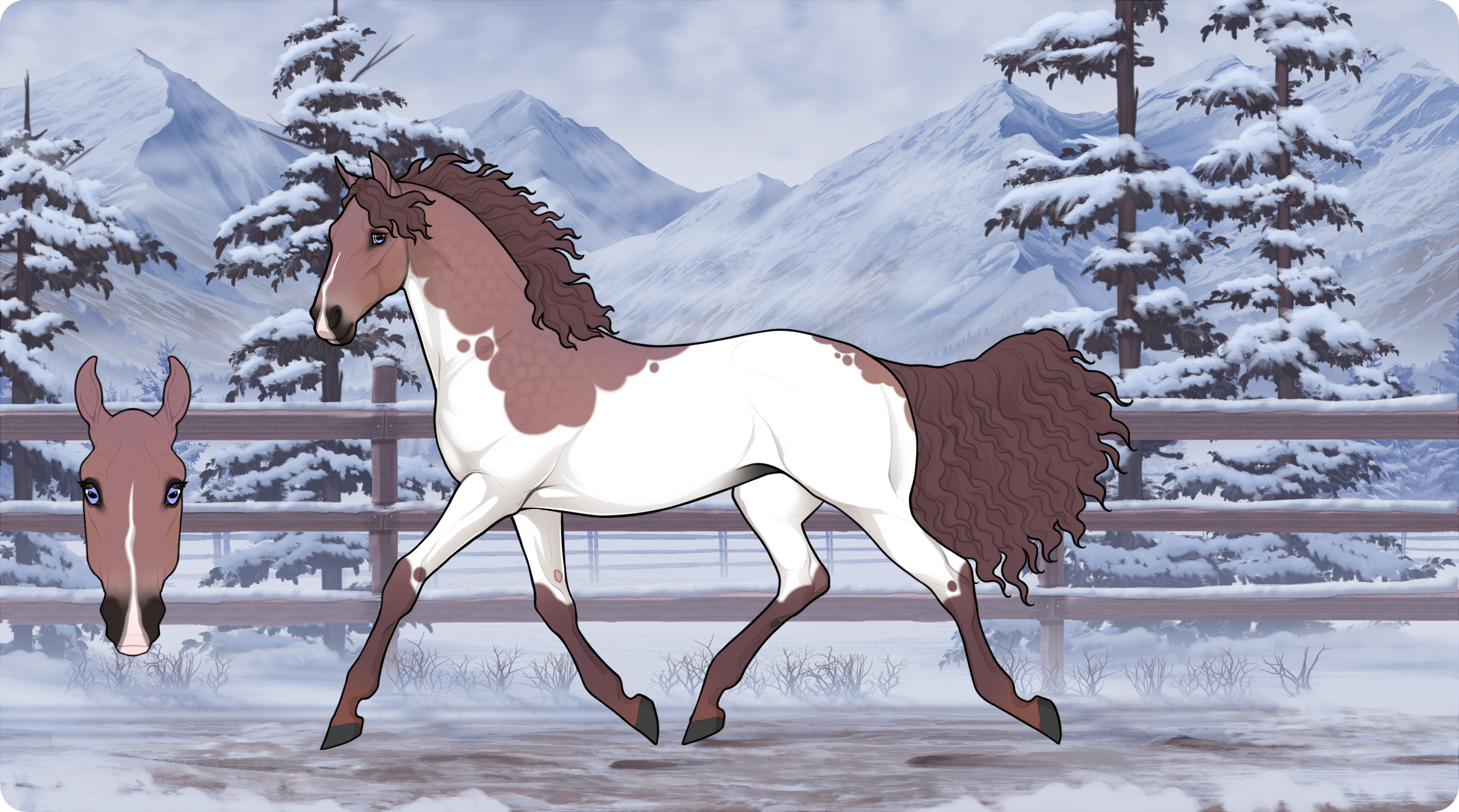 Hooded Verbena Overo (Carries Silver, Rapunzel) + Wulf