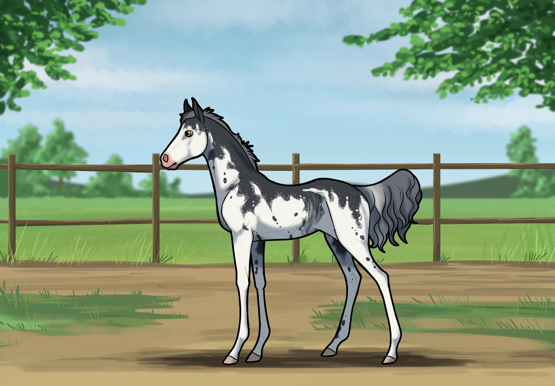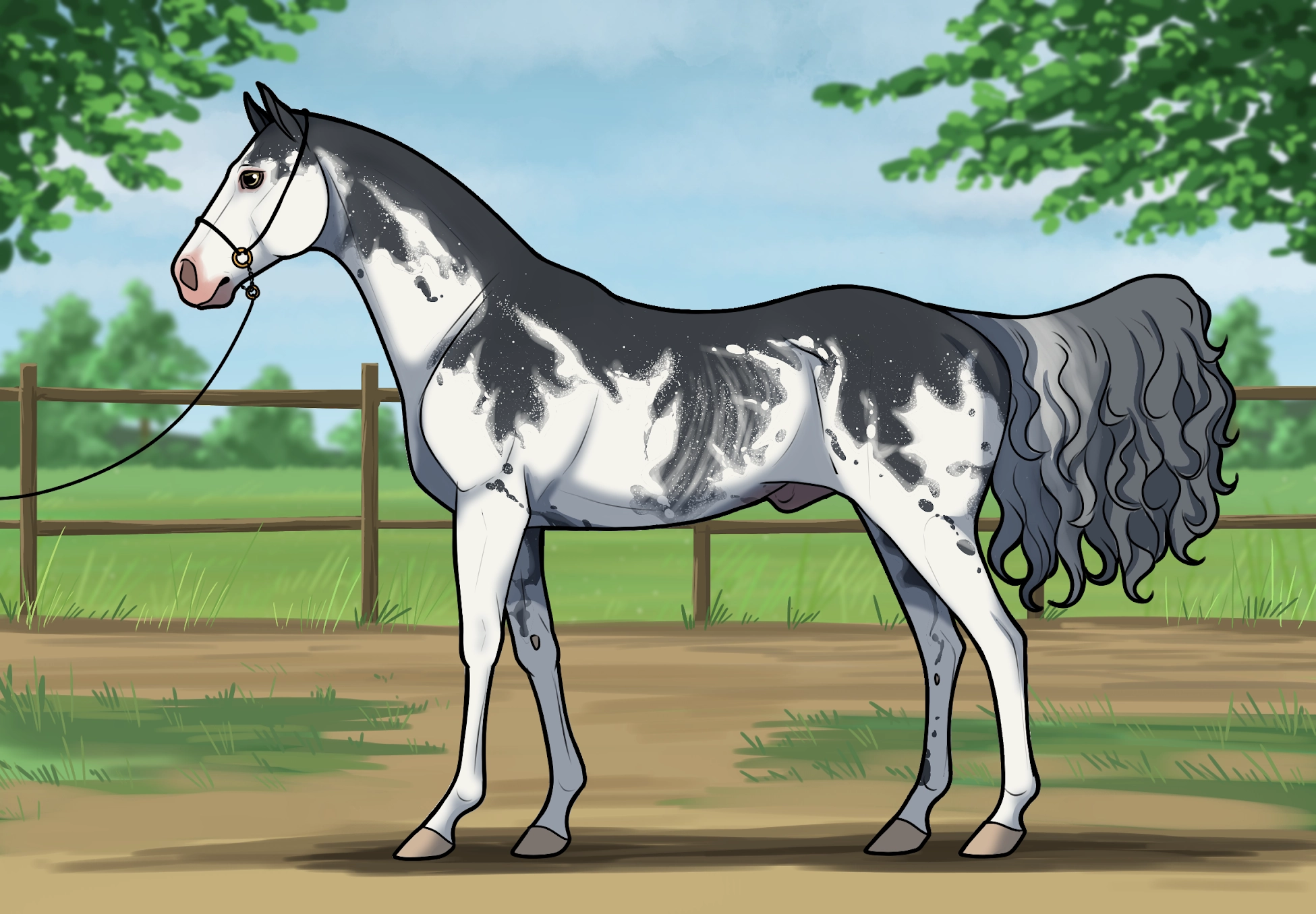 Dominant White on Slate Sabino Rabicano Snowfall (Carries Flaxen)