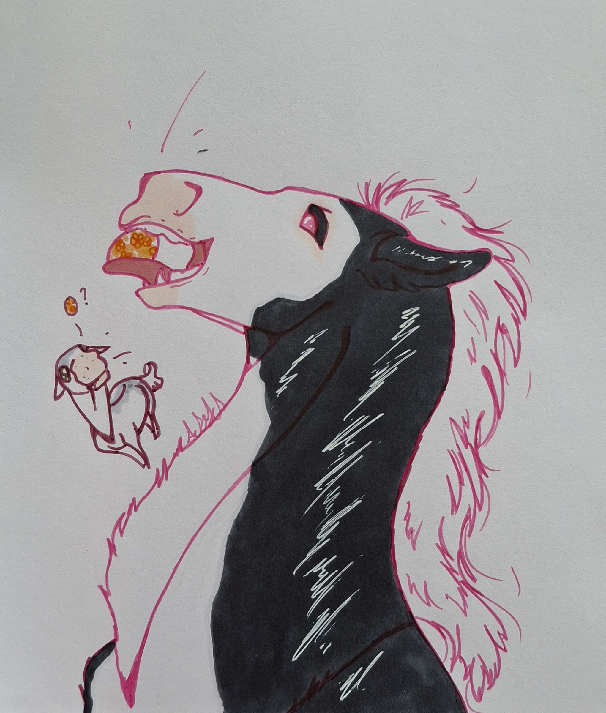 Canine takes her calcium supplements in the shape of eggs, boiled or raw, and in this case coloured. Azura tossed them to her for funsies, which Canine always finds super fun.