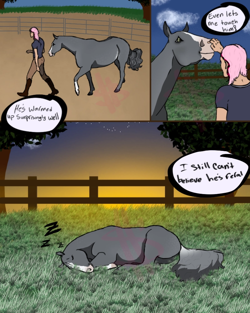 - Description: This horse might be feral, but nobody's had time to do a proper evaluation on them yet. It seems to match the description of an old 'lost horse' poster from the next county over; the details say that the horse was lost after a storm blew the doors open, but that's several hundred miles away...could it be the same horse?