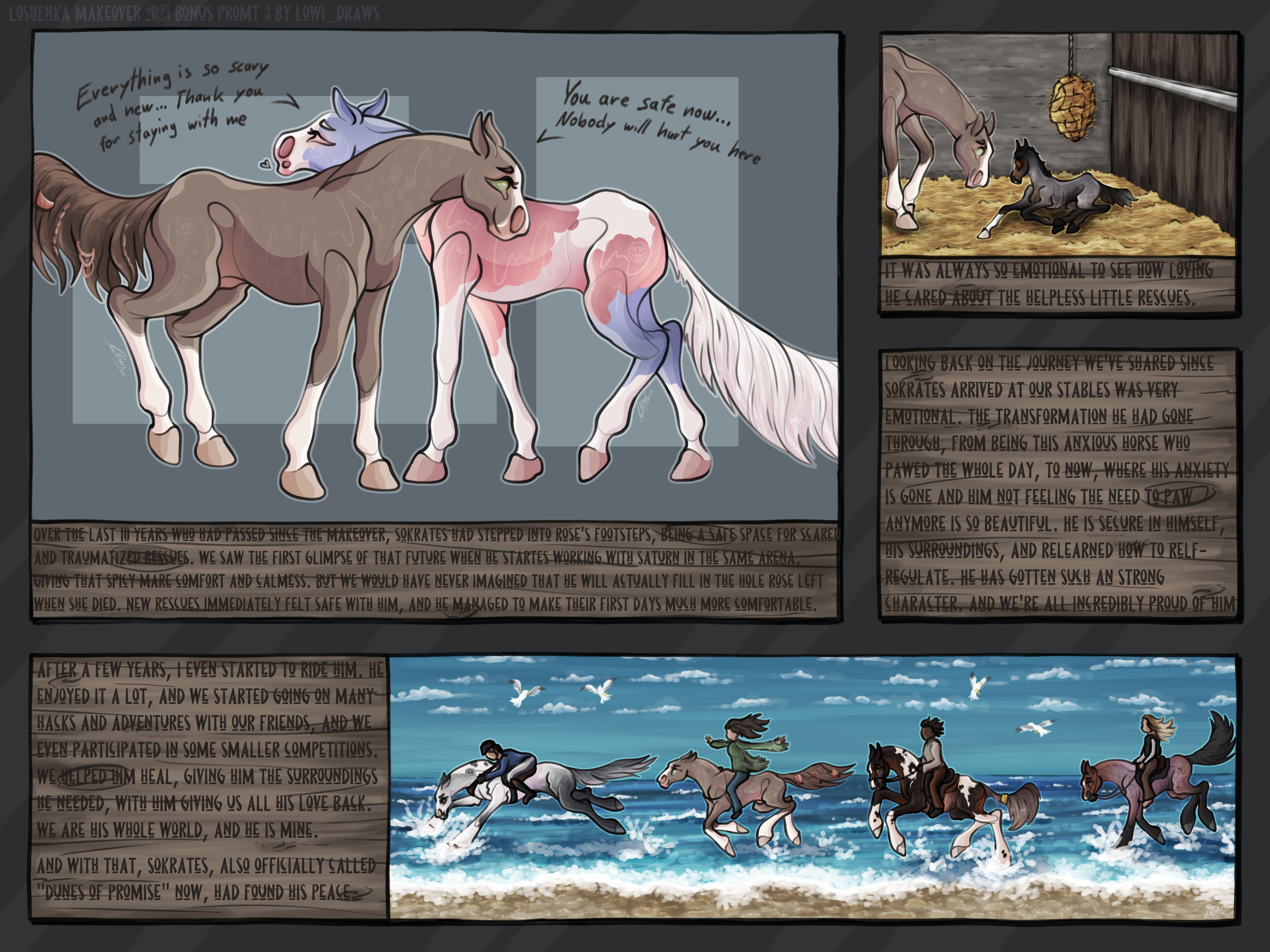 Looking back on the journey we've shared since Sokrates arrived at our stables was very emotional. The transformation he had gone through, from being this anxious horse who pawed the whole day, to now, where his anxiety is gone and him not feeling the need to paw anymore is so beautiful. He is secure in himself, his surroundings, and relearned how to self-regulate. He has gotten such an strong character, and we're all incredibly proud of him.